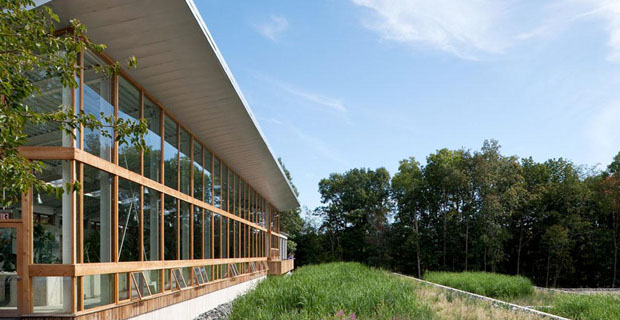 Nel 2006, l’Omega Institute ha commissionato allo Studio BNIM, gruppo di progettisti da sempre interessati a tematiche green, la progettazione di un nuovo impianto sostenibile di filtrazione delle acque reflue: da qui nasce Omega Center for Sustainable Living, una struttura che si sviluppa su 6200 mq destinata alla sede di un’associazione educativa non–profit, in cui tutti gli standards richiesti dal Living Building Challenge sono stati rispettati, a partire dalla bonifica totale del sito su cui è sorto il centro che prima ospitava, tra le altre cose, una discarica. Al suo interno la produzione di energia, ottenuta attraverso 3 impianti fotovoltaici posti sul tetto e su una parete dell’edificio, supera decisamente il fabbisogno necessario ed è quasi superfluo soffermarsi sui materiali usati, rigorosamente naturali ed atossici. Le iniziative organizzate dall’Omega Institute, atte a sensibilizzare i visitatori su tematiche ecosostenibili, vedono la partecipazione di circa 23.000 persone all’anno.