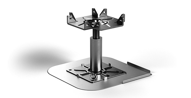 Precisione, affidabilità, versatilità le caratteristiche che più si addicono allo strato separatore in acciaio zincato. Una piastra quadrata di poco meno di 20 cm di lato e 1mm di spessore che, applicata sotto i supporti metallici della pavimentazione sopraelevata, protegge il manto impermeabile durante la posa. Offre la possibilità di posizionare il supporto al centro o al lato così da fornire grande precisione in fase di posa in opera, senza necessità di tagli. Anche in questo caso, sono I dettagli a creare un design che fa la differenza: il bordo della faccia inferiore è stondato per proteggere il manto impermeabile sottostante da eventuali tagli e progettato in modo da garantire l’evacuazione delle acque piovane.