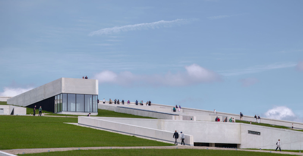 A progettare il museo è stato lo studio danese Henning Larsen Architects, una realtà tra le più significative, anche sotto il profilo della sostenibilità, del panorama architettonico nazionale. L’idea da cui è scaturito l’edificio non è stata di mistificare, sostanzialmente annullare, la percezione dell’ambiente costruito nei confronti di quello naturale, bensì di instaurare una relazione di reciproco vantaggio tra i due. Per raggiungere l’obiettivo lo sviluppo del museo si adatta al profilo del terreno di uno dei declivi della zona, che finisce per inglobare la struttura al di sotto di un ampio tetto giardino inclinato.
