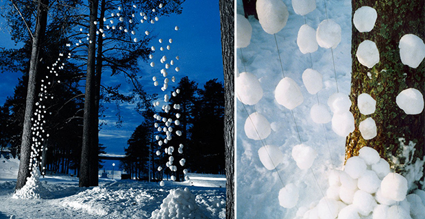 Si può scoprire improvvisamente in mezzo alla boscaglia un nuovo ingresso o la chiusura di un percorso, l'affondamento di un'enorme tazza con dentro un albero (Le bol, 2012) o il fluttuare ordinato di tronchi di pino da una catasta di legna piramidale (Piled forest, 2006). Nel silenzio del paesaggio innevato, l'osservatore entra magicamente in un mondo misterioso grazie ad un arco fatto da palle di neve (Moment of decision, 2004) tra due alti tronchi. L'incantesimo non si è spezzato e il momento cristallizzato è ancora là, a mantenerci sospesi e persi nei nostri pensieri infantili.