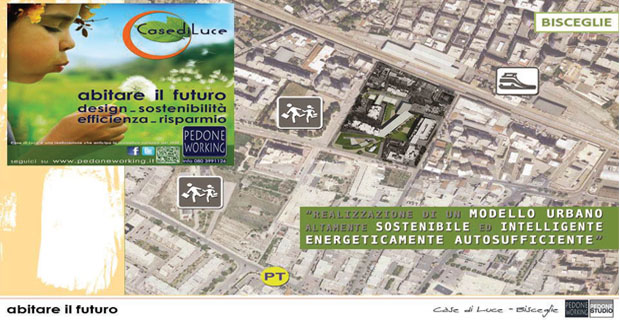 “Case di Luce” il più grande cantiere europeo di bioedilizia abitativa in calce canapa, progettato da Pedone Studio e realizzato dalla Pedone Working, è l’esperimento, anche economico, di un futuro intelligente che guarda alle tecniche costruttive del passato con grande attenzione e le pone sotto una prospettiva d’avanguardia: tufo (come nella tradizione locale) e biocomposto Natural Beton della Equilibrium in canapa e calce (tutti materiali dal passato illustre e dal presente luminoso). Un approccio che ha destato sin dall’inizio grande interesse nel mondo della sostenibilità tanto che questo progetto nel 2012 ha rappresentato l’Italia alla XIII edizione di “Interarch 2012”, la triennale di Architettura di Sofia (Bulgaria) ed è risultato tra i tre progetti finalisti del Concorso Nazionale Energia Sostenibile nelle Città, nell’ambito della Campagna “Energia Sostenibile per l’Europa” in Italia, promosso dall’INU Istituto Nazionale di Urbanistica, dal Ministero dell’Ambiente e della Tutela del Territorio e del Mare, e dall’ANIEM (Associazione Nazionale Imprese Edili e Manifatturiere).