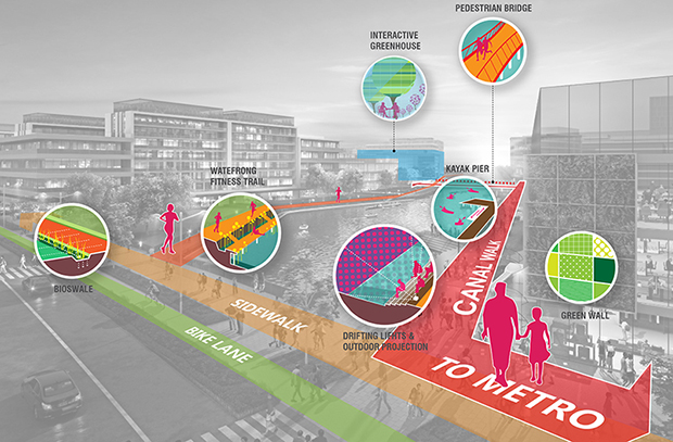 Il complesso integrerà anche centri di ricerca, verde pubblico, uffici, residenze, oltre a programmi di sensibilizzazione del pubblico, che includeranno un museo della scienza, un percorso fitness lungo il canale, un anfiteatro digitale e altre strutture educative.