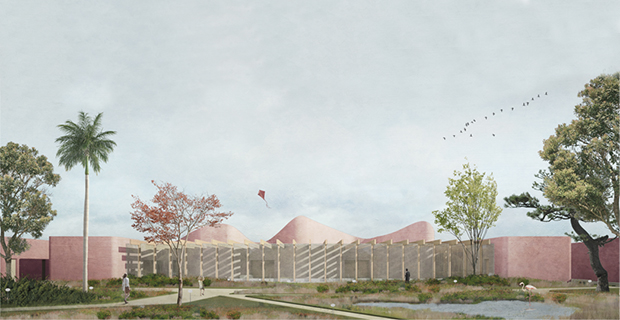 Sempre nell’ottica della sostenibilità e del risparmio energetico fondamentale è il recupero delle acque piovane. Nel progetto della nuova scuola di Selargius tale compito è assolto dal laghetto al centro del giardino botanico. Tale specchio d’acqua si trova sullo stesso livello della scuola mentre, lungo il recinto, il terreno presenta una leggera pendenza; lo scopo è quello di aumentare, grazie anche alla piantumazione di alberi ad alto fusto, il senso di profondità per chi si trova all’interno del giardino botanico.