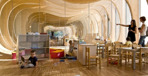 MCA Architects di Mario Cucinella firma la rinascita emiliana dopo il sisma del 2012 con l’inaugurazione a Settembre 2015 del nido comunale d’infanzia che va a sostituire due strutture esistenti danneggiate dal terremoto, con la volontà di riorganizzare e ripensare gli spazi dedicati all’educazione dell’infanzia.