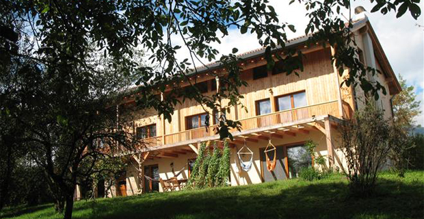 L’edificio del bioagriturismo, situato a fondo valle, è sovrastato dalle alte vette alpine innevate e si presenta come un'ordinaria struttura dalla pianta regolare con il tetto a doppio spiovente, il basamento in muratura e le pareti in legno massiccio. All’interno, distribuiti su tre livelli, trovano posto quattro camere da letto con i rispettivi bagni, una sala lettura, una sauna e un ristorante vegetariano e vegano.