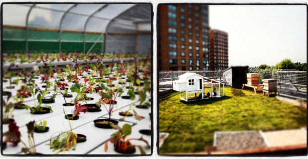 I tre piani del vecchio edificio in mattoni rossi, hanno così ripreso luce e ospitano attualmente un complesso sistema di agricoltura urbana che integra agroforestry e aquaponic.