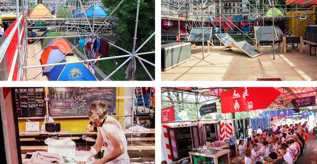 Sono state completate 22 cabine-albergo, realizzate interamente con materiale di riciclo, da 120 progettisti provenienti da Francia, Belgio, Svizzera, Portogallo, Polonia, Inghilterra, Austria e Germania, che hanno avuto l’occasione di auto fabbricare i propri prototipi nel campo di costruzione vicino al Teatro Nazionale di Mannheim.