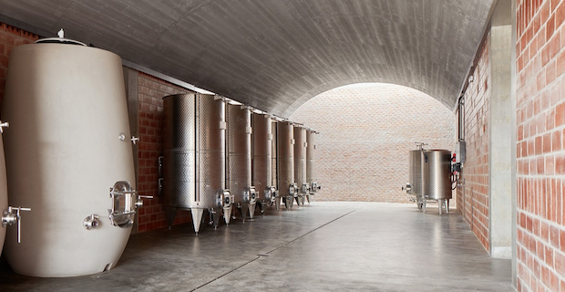 Le quattro aree più importanti di questa architettura, dedicate alla conservazione degli strumenti agricoli, al mosto, al riposo e alla degustazione, presentano ciascuna condizioni di temperatura e di illuminazione idonee alla modalità di trattamento del prodotto durante l’intero processo. Tre ambienti di servizio sono poi interposti tra i quattro principali, generando una pianta formata da sette tunnel connessi tra di loro da un corridoio in direzione trasversale, per una superficie totale di circa 573 mq su un unico livello.