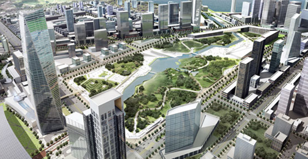 Nel 2015 verrà inaugurata, poco distante da Seul, la città ecosostenibile nata dalla bonifica di un'isola. Temi rilevanti sono la mobilità e la gestione dei rifiuti ma la caratteristica principale è il sistema di canali che la attraversano, in grado di regolare la temperatura e gestire la caduta delle piogge atmosferiche, e il 40% della superficie dedicata agli spazi verdi.
