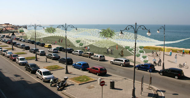 Il gruppo formato dagli architetti Agostino Granato e Antonella De Angelis ha lavorato sulla mappatura degli odori che caratterizzano il lungomare per poi sviluppare il progetto di una copertura in travi reticolari in acciaio e al contempo lavorando sul movimento del suolo ipotizzando la realizzazione di un terrazzamento che procede dalla quota stradale fino al mare.
