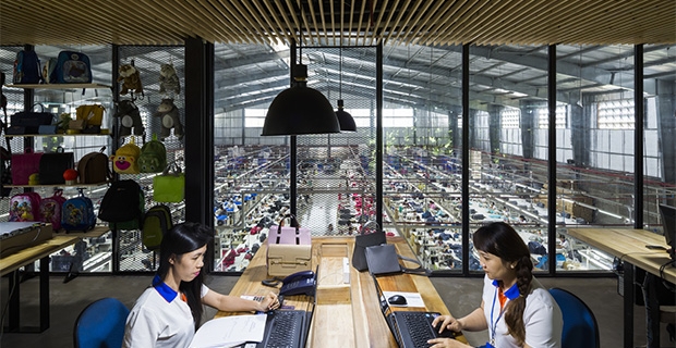 La fabbrica Desino, azienda che produce capi di abbigliamento ed accessori, è stata progettata a partire dal recupero di un vecchio stabilimento abbandonato e completata nel 2015 a Bình Chánh in Vietnam. Gli Ho Khue Architects hanno voluto creare un opificio pioneristico in grado di garantire il benessere fisico e morale dei lavoratori di ogni grado all’interno dell’azienda riducendo lo stress e di contenere i costi energetici per il raffrescamento.