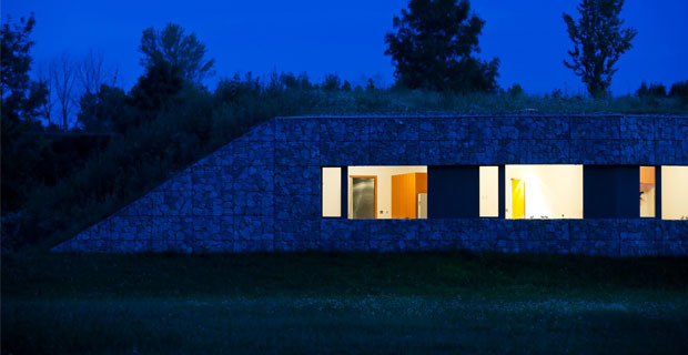 Nei pressi di Lednice in Repubblica Ceca lungo il fiume Thaya si trova una collina abitata: si tratta di Hunting Lodge i cui spazi, che ospitano i visitatori e gli osservatori della flora e della fauna della riserva di caccia, sono stati ricavati sotto il livello del terreno. Il progetto del rifugio è stato concepito dallo studio di architettura Basarch, che ha completamente sostituito il fabbricato esistente, tecnicamente inefficiente, con un edificio quasi completamente celato alla vista sotto un prato verde e integrato nell’ambiente circostante.