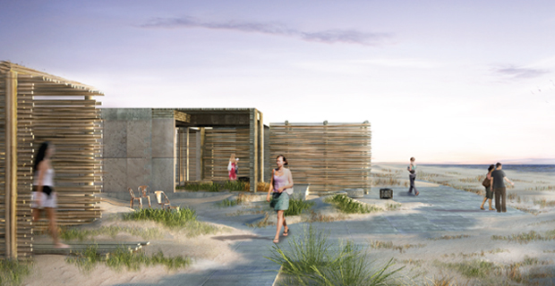 Tra i progetti pilota più meritevoli, segnaliamo quello di Marika Maione “undeRdune” che, laddove sorge l’incompiuto stabilimento balneare NATO, propone un nuovo centro di ricerca ed educazione ambientale. Il progetto non intende demolire il fabbricato esistente per ricostruirlo da zero: ne modifica solo i contorni, per favorirne l’integrazione con il paesaggio sabbioso circostante. Sull’elaborato presentato da Marika al termine del Master si legge: “Granelli di sabbia, sospinti dal vento, avvolgono e sovrastano l’opera dell’uomo, eterna imperfezione, stabilendo un rapporto osmotico tra natura ed edificio”.