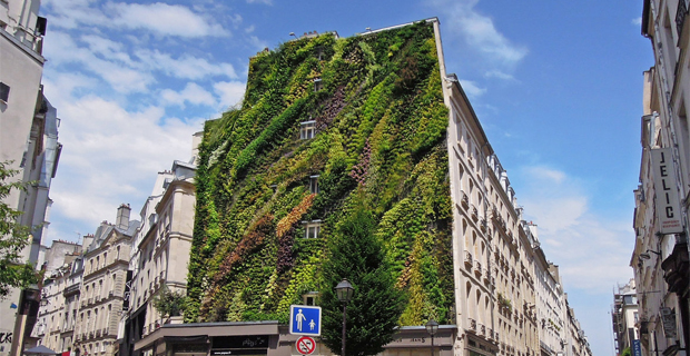 L’orientamento della parete a sud–ovest ha permesso la crescita di una vasta gamma di specie vegetali e la sua installazione ha necessitato di appena sette settimane, beneficiando delle ottimali condizioni climatiche per l’impianto, tra marzo e aprile. Il giardino verticale si colloca sulla facciata angolare di un edificio all’incrocio di tre strade molto trafficate, Montorgueil, Reamur Sebastopol e le Grands Boulevards.