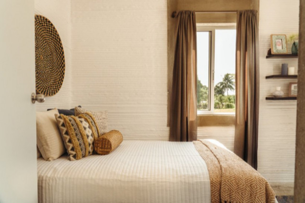 La zona giorno di un'abitazione del quartiere stampato in 3D in Messico. Foto Joshua Perez/New Story.