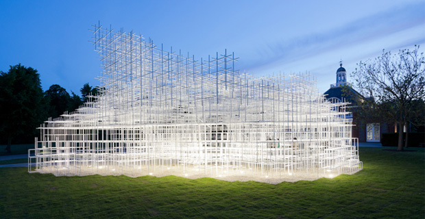 L’architetto giapponese 41enne Sou Fujimoto, è il più giovane ideatore del 13esimo padiglione estivo nei giardini di Kensington a Londra, commissionato dalla Serpentine Gallery. La struttura, fittissima e tubolare, è una nuvola bianco–latte che si espande su 350 mq e combina il paesaggio naturale con quello artificiale. Lo spazio definito è semitrasparente e sospeso, con gradini, tavoli e sedute fruibili dai visitatori. Il padiglione, esposizionegratuita dell’avanguardia architettonica ed imperdibile appuntamento culturale, è stato inaugurato l’8 giugno e sosterà fino al 20 ottobre 2013 per ospitare gli eventi estivi previsti nell’Hyde Park. Le precedenti edizioni hanno visto come protagonisti: Herzog & de Meuron e Ai Weiwei (2012), Jean Nouvel (2010), Frank Gehry (2008), Oscar Niemeyer (2003); Zaha Hadid ha firmato l’installazione inaugurale nel 2000.