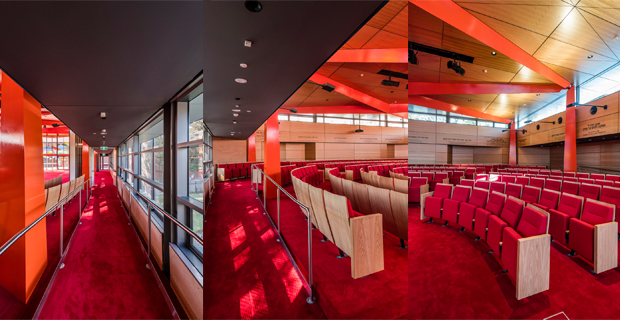 Il nuovo progetto è stato completamente finanziato dalle donazioni dei membri della Comunità ed ha soddisfatto l’esigenza di dotare il campus di una confortevole sala multifunzionale. Grazie ad una parete mobile, trattata acusticamente, lo spazio interno viene suddiviso in funzione del numero di posti a sedere: da un minimo di 270 per piccole funzioni intime a un massimo di 700. Inoltre, un impianto per il rinforzo audio migliora l'adattabilità dello spazio a seconda delle diverse esigenze.