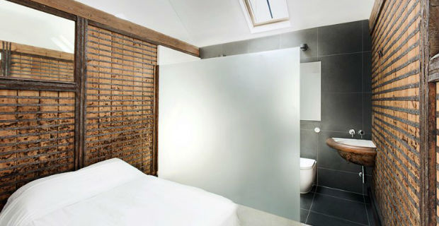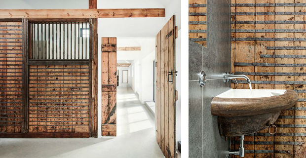 Vengono restaurate e ricollocate le pareti lignee che separavano i box dei cavalli che fungono ora da partizioni interne, i vecchi abbeveratoi divengono lavabi del bagno e persino gli anelli metallici sottostanti a cui si legavano i cavalli vengono riutilizzati come porta–asciugamani.