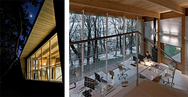 L’edificio sperimentale TVZEB, acronimo di Traverso–Vighy Zero Energy Building, nato in collaborazione con il Dipartimento di Fisica Tecnica dell’Università di Padova e realizzato in provincia di Vicenza, è la nuova sede dello studio di architetti (fruitori e progettisti dell’opera) Giovanni Traverso e Paola Vighy, esemplare connubio di architettura a filiera corta secondo le strategie LCA e di atelier autosufficiente. Gli architetti, ammettiamolo, spessonon danno il buon esempio. Vi fidereste di chi professa ideali di sostenibilitàmentre ogni giorno lavora a quegli stessi ideali dall’interno di un palazzone di cemento anni ‘70? Sarebbe come un oncologo che promuovesse la salute salvo poi fare endorsement agli inceneritori! Per fortuna però, c’è ancora chi allinea le proprie azioni al proprio mestiere.