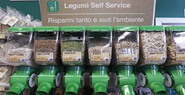 La gestione del supermercato è attenta anche alla modalità di vendita della merce, prodotti non comuni ma che vanno dal biologico all’equosolidale a prodotti sfusi che, più che avere ciascuno un proprio imballaggio, vengono acquistati alla spina presso distributori, in modo tale da ridurre lo scarto di imballaggi e inquinare meno. Significativa attenzione è posta all’angolo surgelati dove i banchi freezer sono chiusi con vetri a scorrimento; tale accorgimento comporta un risparmio del 15% di energia elettrica rispetto a quella prevista per produrre freddo nei banchi e, in più, il calore prodotto dalle celle frigorifere, viene reimpiegato per il riscaldamento dell’acqua dei bagni. Anche spostandosi nei servizi, l’attenzione resta alta, cosi le piastrelle di rivestimento dei servizi igienici sono realizzate con neon esausti riciclati.