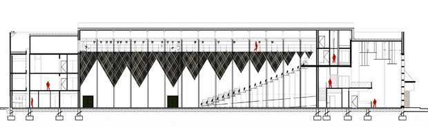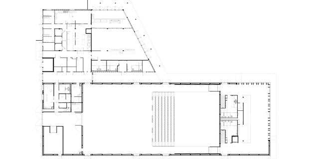 L’accesso al teatro avviene attraverso un’ampia piazza pubblica che offre respiro all’architettura creando un luogo di incontro per tutto il quartiere.