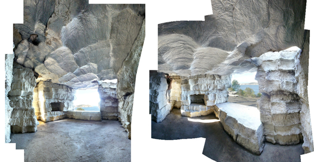 La struttura dell’abitazione è stata realizzata in modo assolutamente singolare: dopo aver scavato una buca nel terreno, sul quale sarebbe sorto il progetto, sono stati mescolati terra e cemento con al loro interno balle di fieno e, successivamente, risotterrati insieme. Dopo circa un anno, la terra e il cemento si sono solidificati, scambiandosi le proprietà. La terra ha ceduto al cemento un colore e una texture più naturale, mentre il cemento ha donato alla terra le caratteristiche di resistenza e solidità. Inoltre, il fieno è servito ad impedire il cedimento dei due materiali durante la stagionatura, lasciando all’interno lo spazio abitativo.