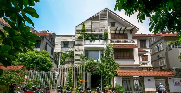 Lo Studio 120, collettivo di architetti vietnamiti, ha trasformato una casa mai completata, in un quartiere della città a sud-ovest di Hanoi, in uno spazio di vita e di lavoro. Su richiesta della società di consulenza e design Mein Garten, i progettisti hanno riprogettato l’edificio ponendo l’attenzione sull’efficienza energetica e sul riuso di materiali di recupero, in modo da ridurre sensibilmente i costi della ristrutturazione.