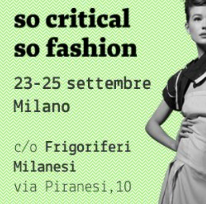 Alla sua seconda edizione milanese e dopo la forte affluenza l’interesse suscitato dalla prima, anche quest’anno si svolgerà “So critical, so fashion”, un evento dedicato a chi, anche nel mondo della moda, vuole sperimentare un modo di lavorare, di proporsi e di pensare alla creatività in maniera sostenibile e alternativa.