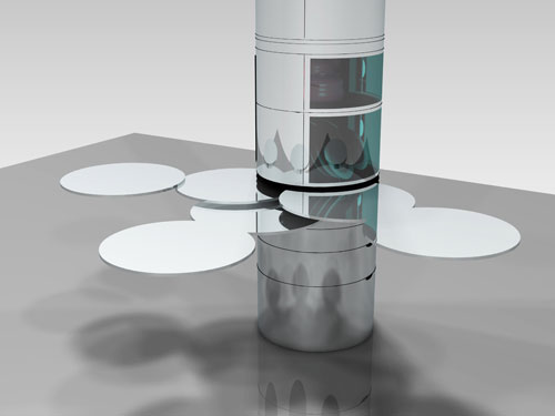 Con Kolumn la cucina diventa verticale e ultracompatta ed in grado di sfruttare in modo ottimale lo spazio. Ciò comporta un risparmio in termini di spazio occupato e di materiale utilizzato e di conseguenza minor quantità di energia usata per la produzione. Kolumn ospita nel suo cilindro tutti gli elettrodomestici di cui una cucina necessita e questa distanza ravvicinata tra essi permette un recupero e riutilizzo del calore. Naturalmente viene riusata anche l’acqua per la lavastoviglie.