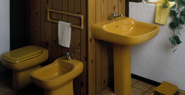 Un altro esempio di lavabi colorati di giallo degli anni sessanta.