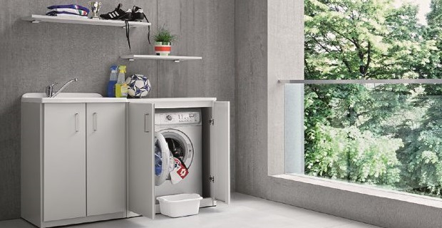 Mobile contenitore - nel caso di balcone aperto è necessario anche un mobile contenitore (a protezione dei soli elettrodomestici o di tutto l’angolo lavanderia).
