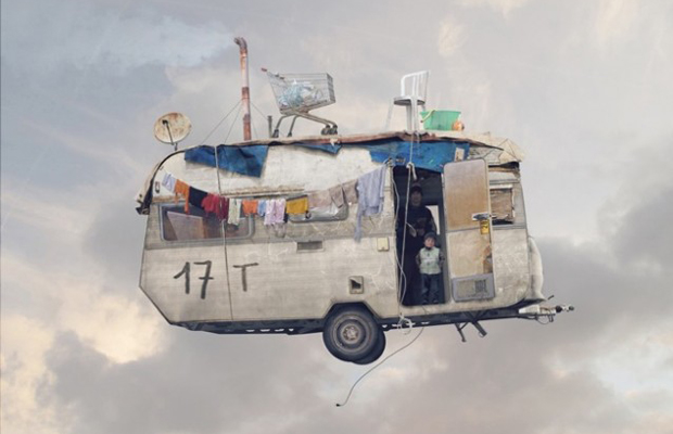 Si sono staccate da terra, chissà come e quando, e hanno preso il volo: sono le case di Laurent Chéhere, fotografa francese appassionata di "surrealismo". Dall'hotel alla roulotte alla villetta piena di animali, tutte le case sono volanti, rimangono sospese nell'aria, alcune attaccate solo ai fili della corrente per non scappare via.