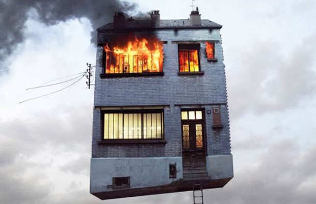 Laurent Chehere, nel suo progetto personale, ci regala una visione onirica, dove gli scorci suburbani fluttuano e fanno ripensare al viaggio, unico mezzo come fuga dai problemi. Alcuni di questi edifici inoltre si convertono in prigioni in fiamme, a testimoniare che spesso la fuga dalla realtà non è possibile!