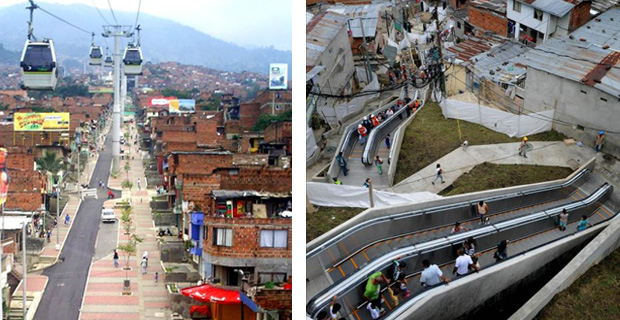 Sempre per favorire la mobilità cittadina, è stato installato a Medellin un servizio di scale mobili esterne, le più alte del mondo, che è costato 6,7 milioni di dollari e ha permesso di connettere12.000 residenti di aree poco accessibili, i quali con le scale mobili possono effettuare la risalita della collina in sei minuti invece che in trentacinque minuti di scalini.