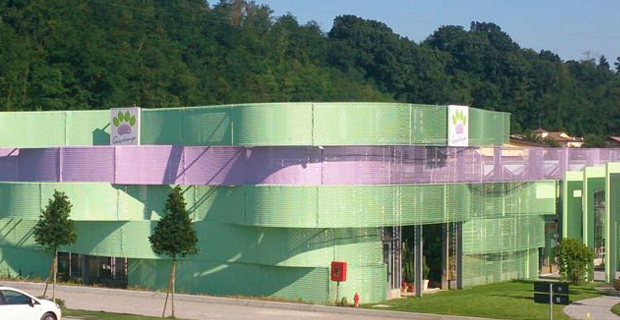 Le acque piovane sono accumulate in un laghetto artificiale adiacente alla struttura e poi riutilizzate per l’irrigazione.