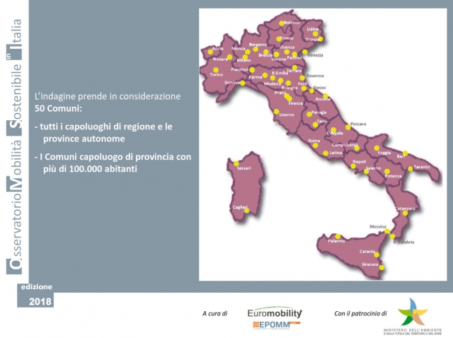 La classifica delle città secondo criteri di mobilità sostenibile, è contenuta nel rapporto “Mobilità sostenibile in Italia: indagine sulle principali 50 città“, elaborato da Euromobility con il Patrocinio del Ministero dell’Ambiente e della Tutela del Territorio e del Mare.
