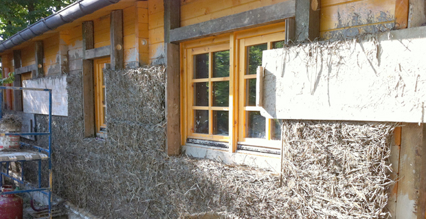 GB: In quale modo le balle di paglia possono migliorare un edifico esistente dal punto di vista energetico? Ci dia una scala di valori ad esempio in termini di trasmittanze termiche per il comfort invernale, di sfasamento dell’onda termica d’estate di traspirabilità. Quali valori di comfort possiamo raggiungere costruendo ex novo un edificio interamente in balle di paglia?