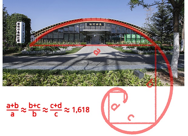 L’Architetto Cardenas ha notato che la piegatura massima degli archi di bambù che compongono la struttura corrisponde alla curva della sezione aurea