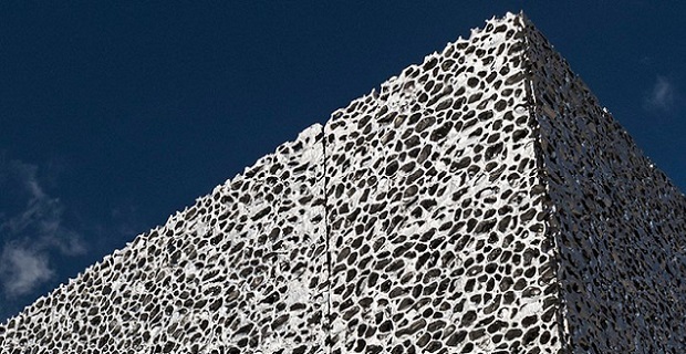 Comunica originalità e modernità, è Alusion, semplice alluminio, ma lavorato in modo da creare intricati pannelli prodotti in lastre continue e formati speciali, interamente riciclabili. I più curiosi saranno interessati a saperne di più sul modo in cui viene realizzato questo pannello dall’aspetto unico: iniettando dell’aria nella schiuma di alluminio stabilizzata quando è in stato di fusione.
