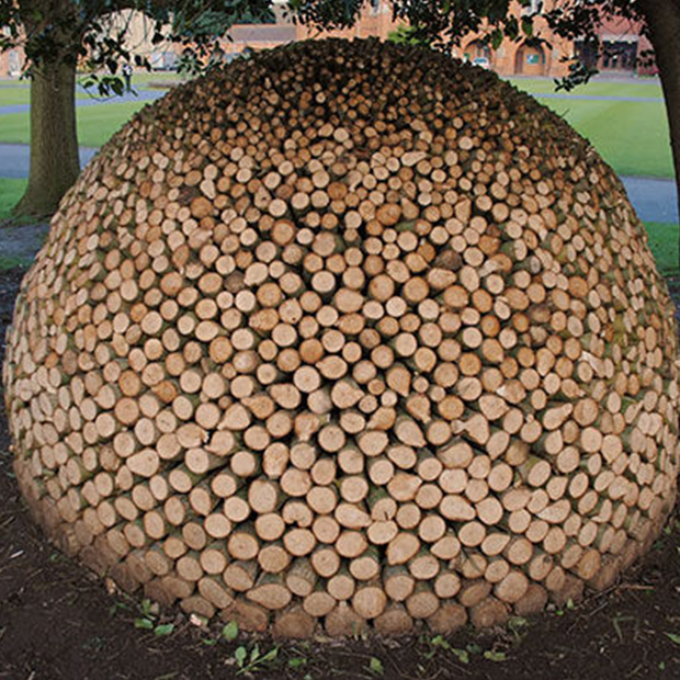 Meno conosciute sono le cataste di legna come elementi architettonici e opere di land art. Sedute rustiche, barriere, percorsi e persino abitazioni possono essere realizzati con ceppi triangolari, tronchi e cortecce sia in contesti naturali che urbani.