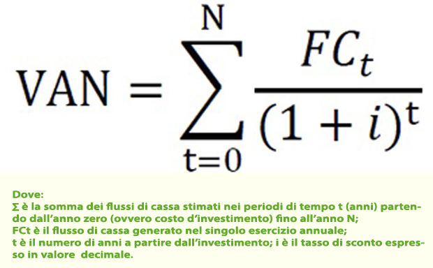 In ultima analisi, il risultato VAN positivo, di conseguenza il tasso interno di rendimento (TIR) maggiore di zero e il periodo di recupero del capitale (PBP) minore di 10 anni, significano che l’investimento è, secondo il metodo, conveniente.